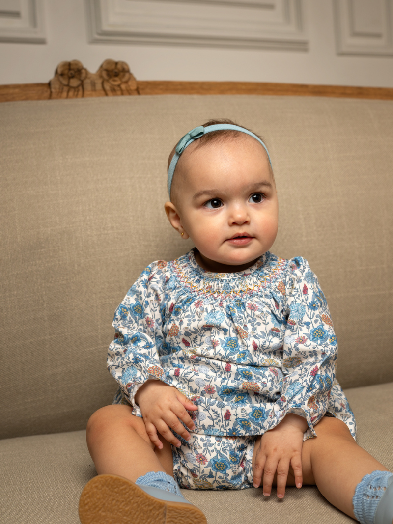 With its classic A-line silhouette and delicate smocking around the neckline, the Cynthia Dress reflects the enduring beauty of European design. Long sleeves and breathable 100% cotton make it as comfortable as it is charming—perfect for play dates or special occasions alike.