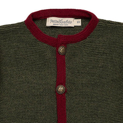 A refined layering piece, the Daniel Cardigan is crafted in a deep green knit, elevated with burgundy trims for a touch of classic charm. Delicate front pockets and intricate detailed buttons add subtle sophistication. Perfect for layering, it’s a timeless design to carry little ones through the season in effortless style.