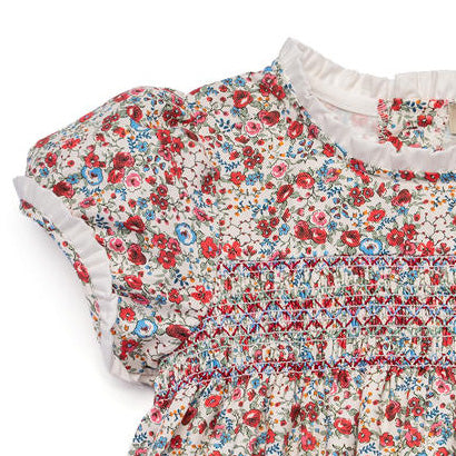 Timeless and beautifully crafted, the Gabriela Dress captures traditional European charm with thoughtful details. Designed for special moments in our exclusive Scarlet Garden print, its smocked bodice adds delicate texture, while ruffled sleeves and neckline lend a refined touch. A romantic keepsake of childhood, it’s a piece to treasure for years to come.
